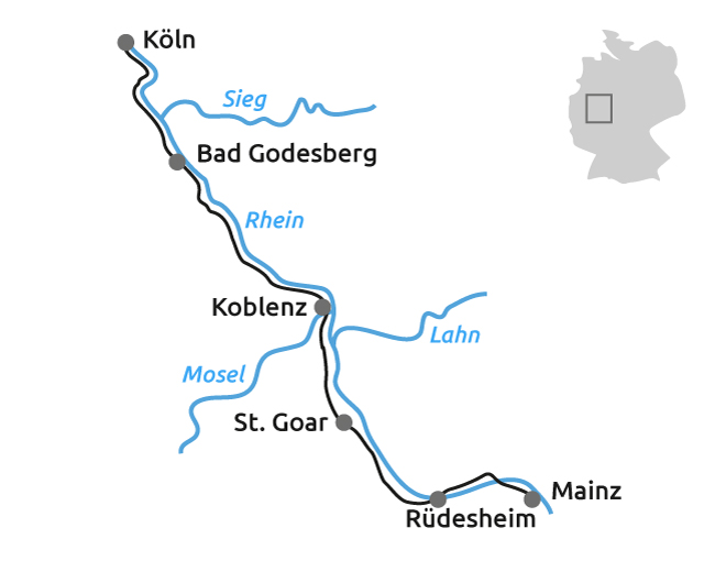 Ez a nagyon kényelmes és könnyű kerékpáros barangolás a Rajna mentén lehetőséget biztosít a rengeteg látnivaló felkeresésére is, a helyi gasztronómia és nem utolsó sorban a borkultúra megismerésésre. Nem tilos útközben betérni egy finom Rajnai Rizling fröccsre!